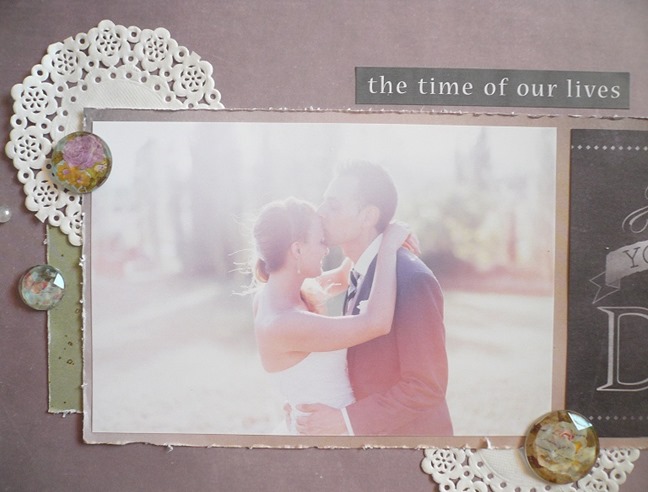 Quindi… che il divertimento abbia inizio! Questo è il mio progetto: ho scelto la canzone “good riddance” dei Green Day e ho usato la frase “the time of our lives” (leggermente riadattata dal testo) come titolo per questo layout sul mio matrimonio./So, let the fun begin! This is my project for you: I chose the song “good riddance” by Green Day and used the sentence “the time of our lives” – slightly modified from the lyrics – as title for this layout about my wedding.